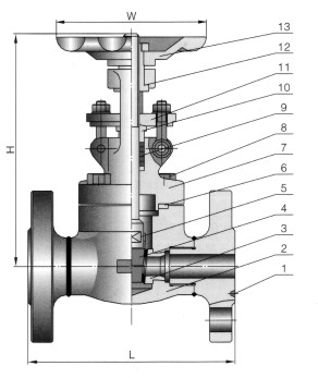 鑄鋼閘閥的啟閉件是閘板,閘板的運動方向與流體方向相垂直,閘閥只能作全開和全關(guān) , 不能作調(diào)節(jié)和節(jié)流。閘板有兩個密封面 , 最常用的模式閘板閥的兩個密封面形成楔形、楔形角隨閥門參數(shù)而異 , 通常為 50, 介質(zhì)溫度不高時為 2°52' 。楔式閘閥的閘板可以做成一個整 體,叫做剛性閘板;也可以做成能產(chǎn)生微量變形的閘板 , 以改善其工藝性 , 彌補密封面角度在加工過程中產(chǎn)生的偏差 , 這種閘板叫做彈性閘板。